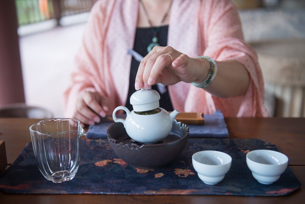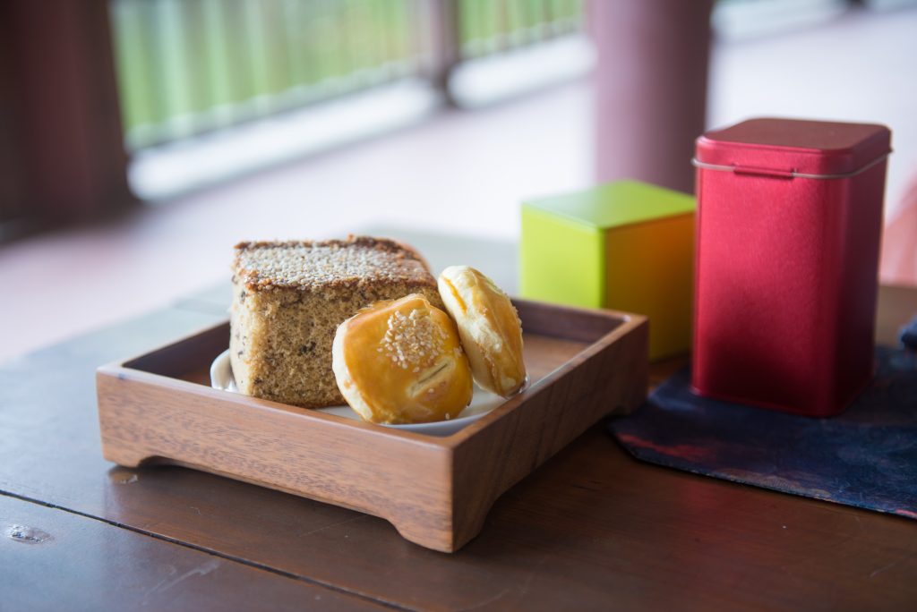 带了千禧酥的点心,书放家的明前龙井,好看的茶具和茶盘。